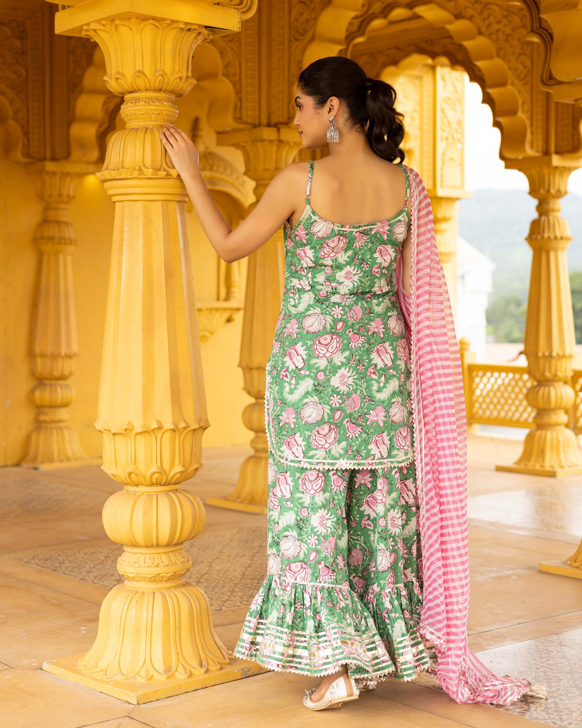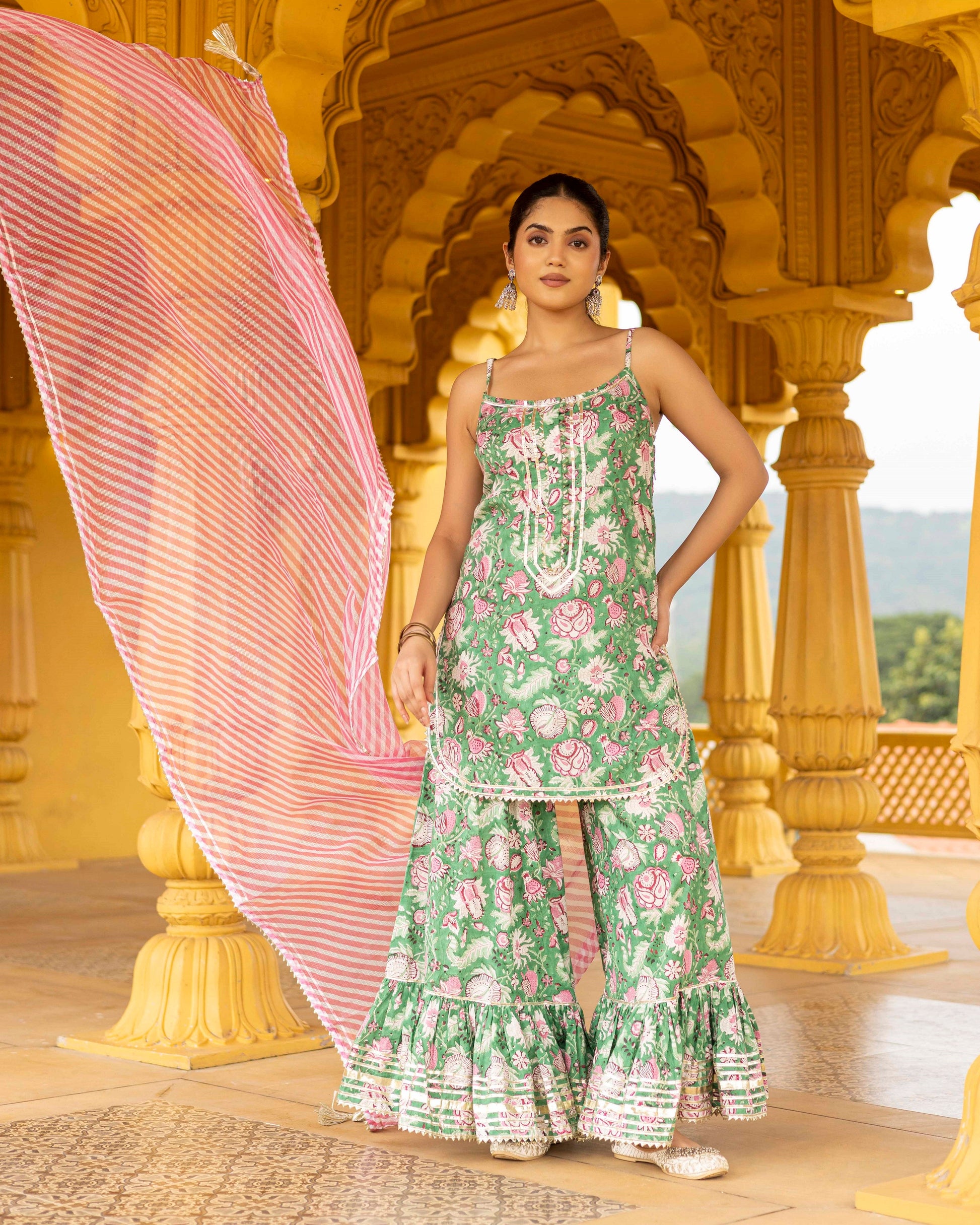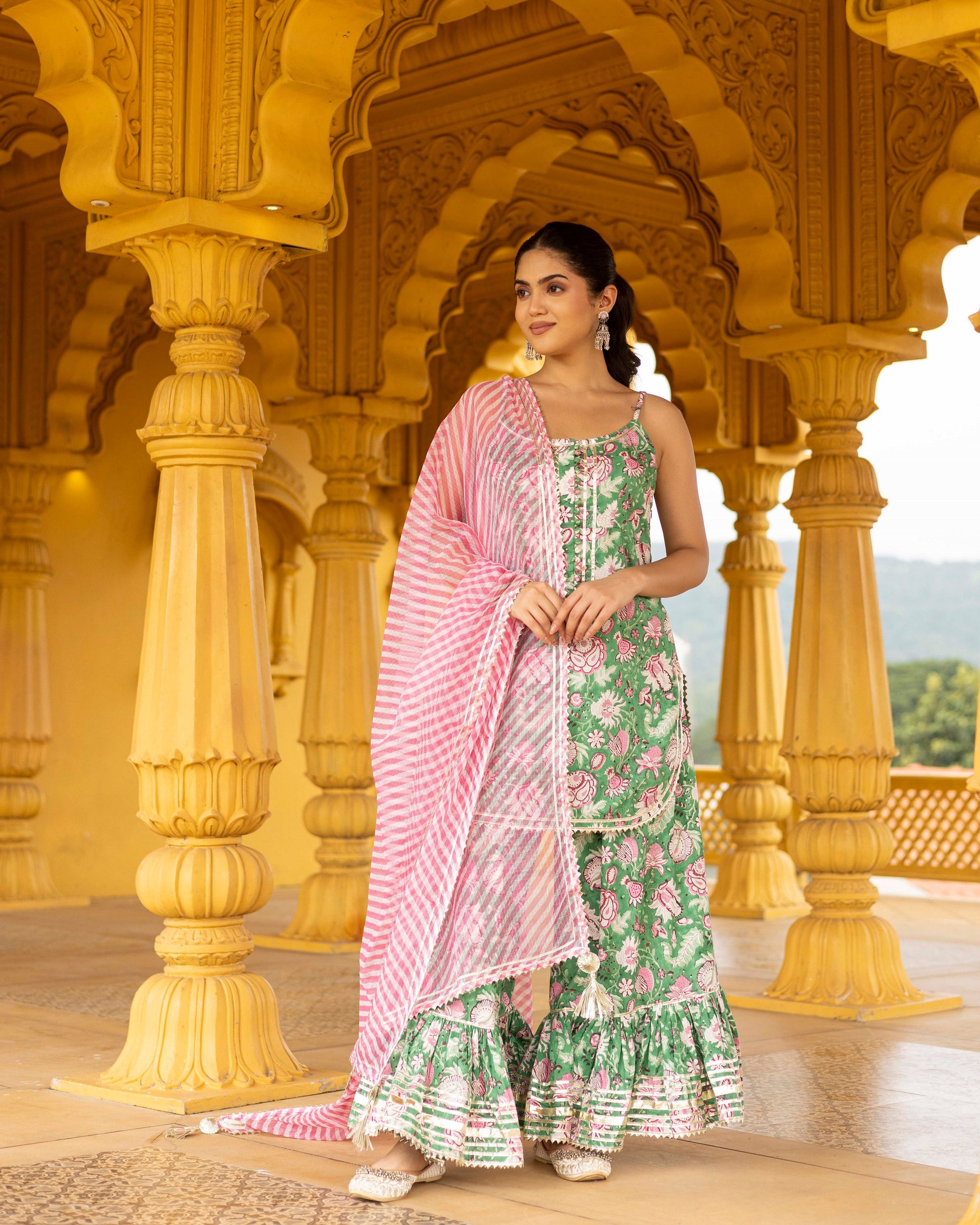 - Details: Kurta Length- 34, Sharara Length- 40" ,Dupatta Length- 2.5 Mtr