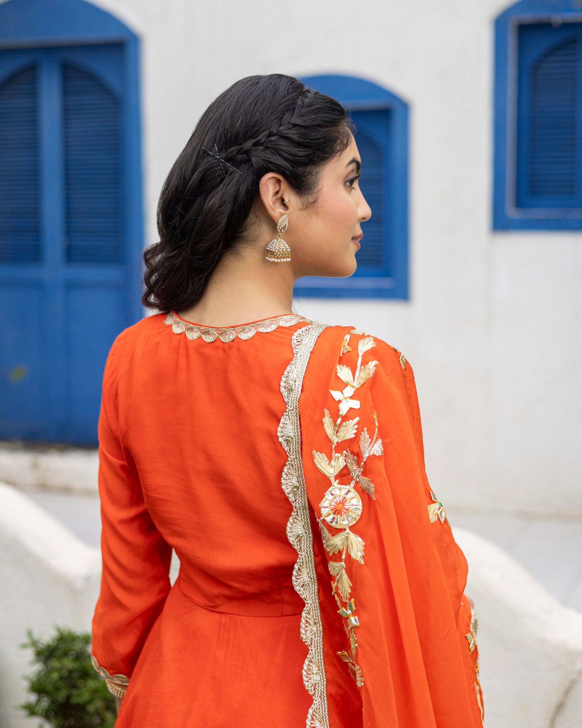 Aerospace Orange Sharara with gotta Patti Dupatta & Kurta set