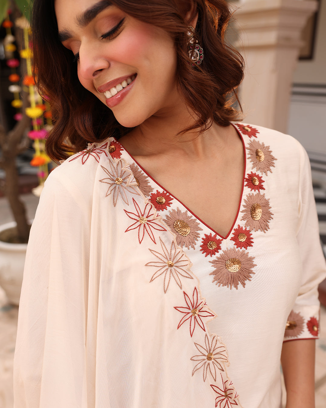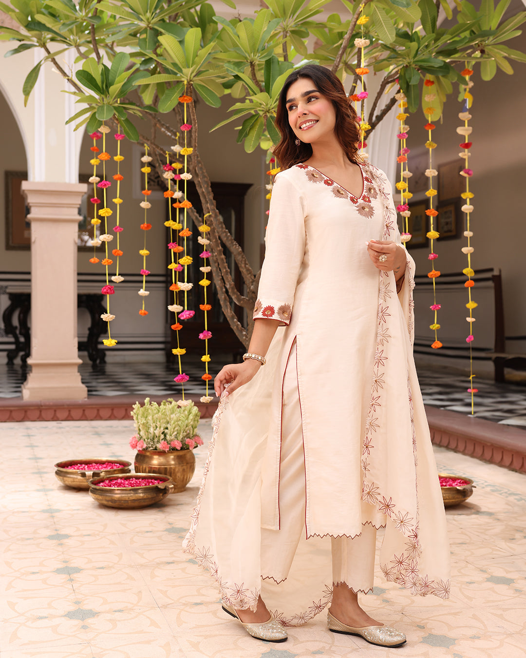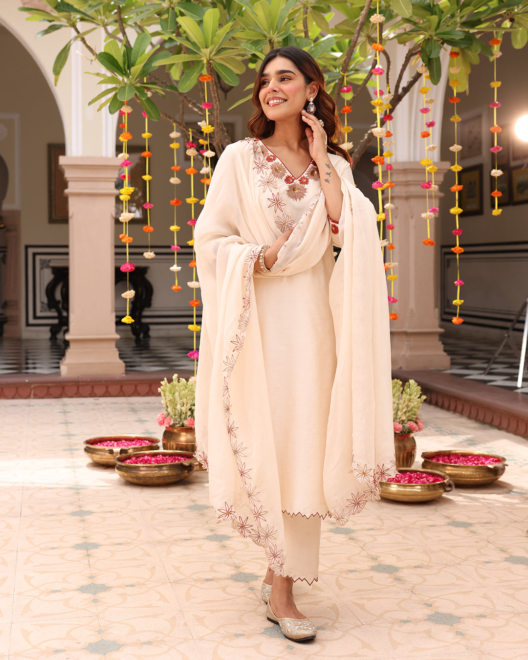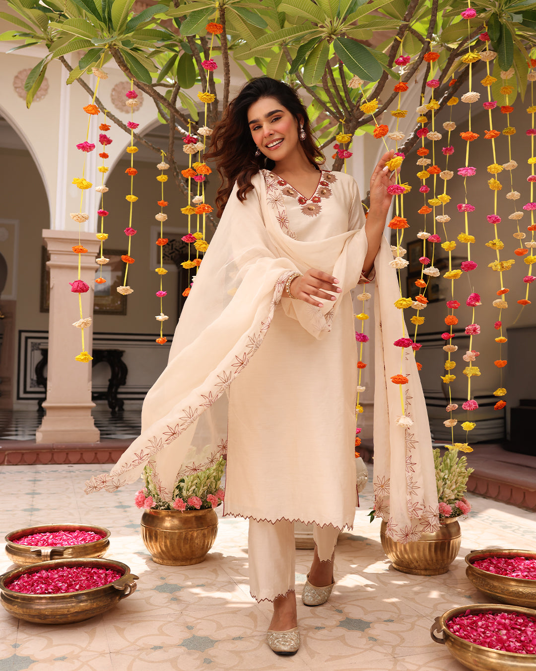 This set include Straight Kurta with pant and Organza dupatta.Kurta & dupatta is embroidered
