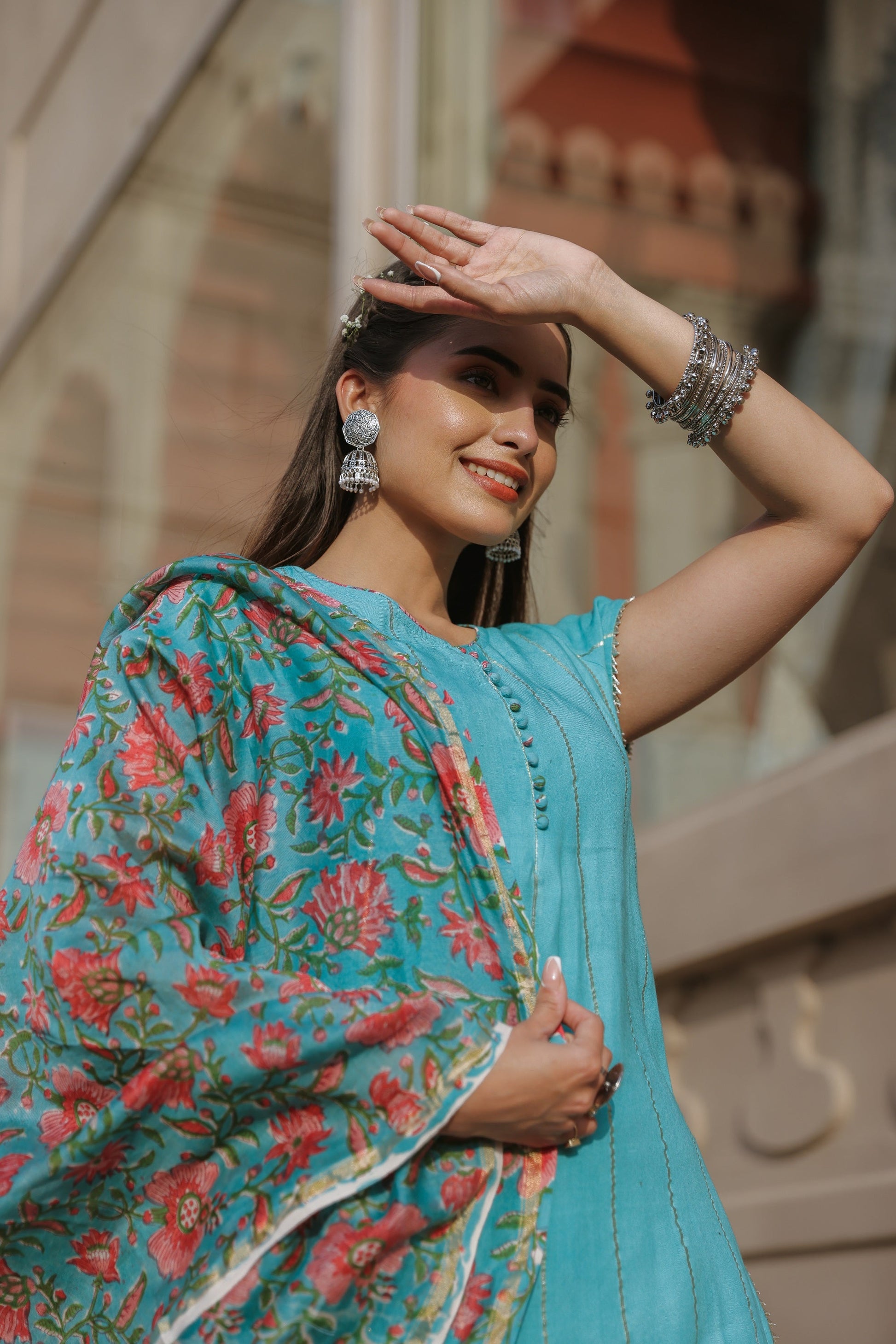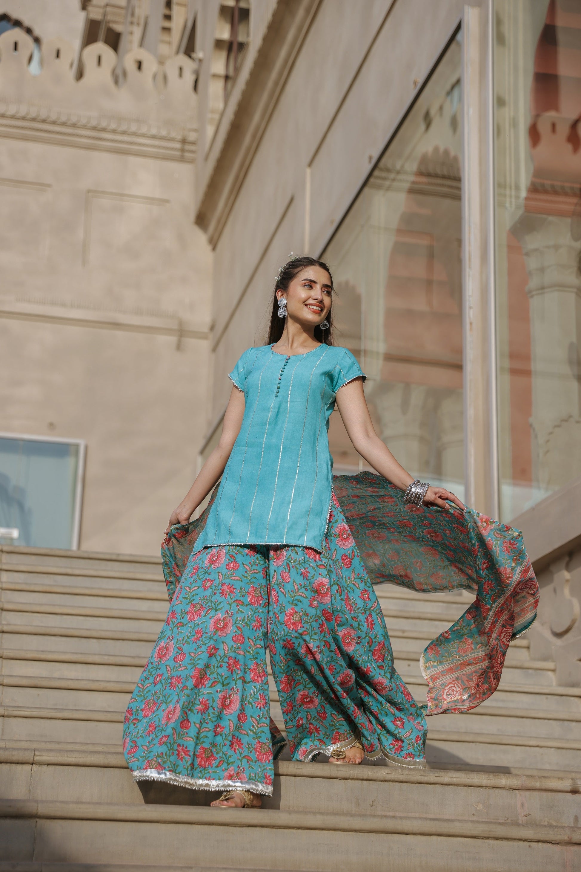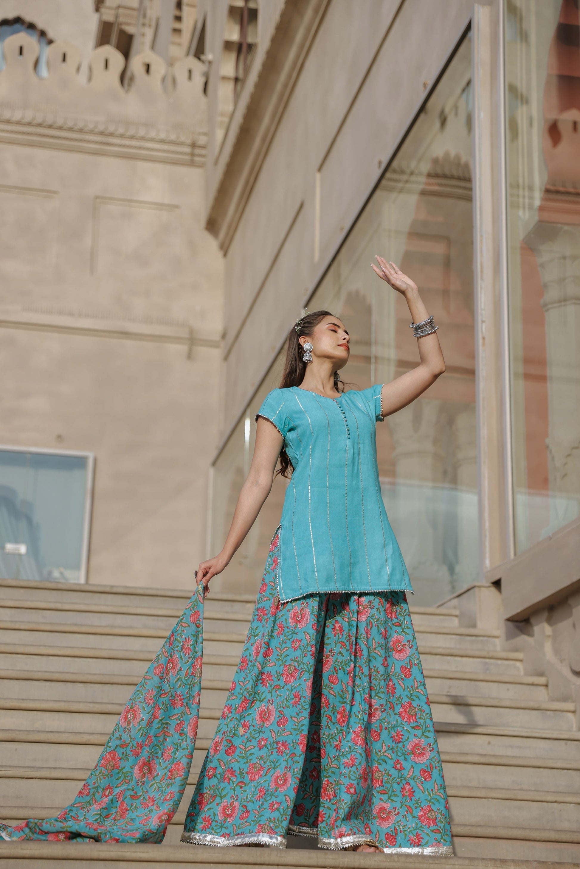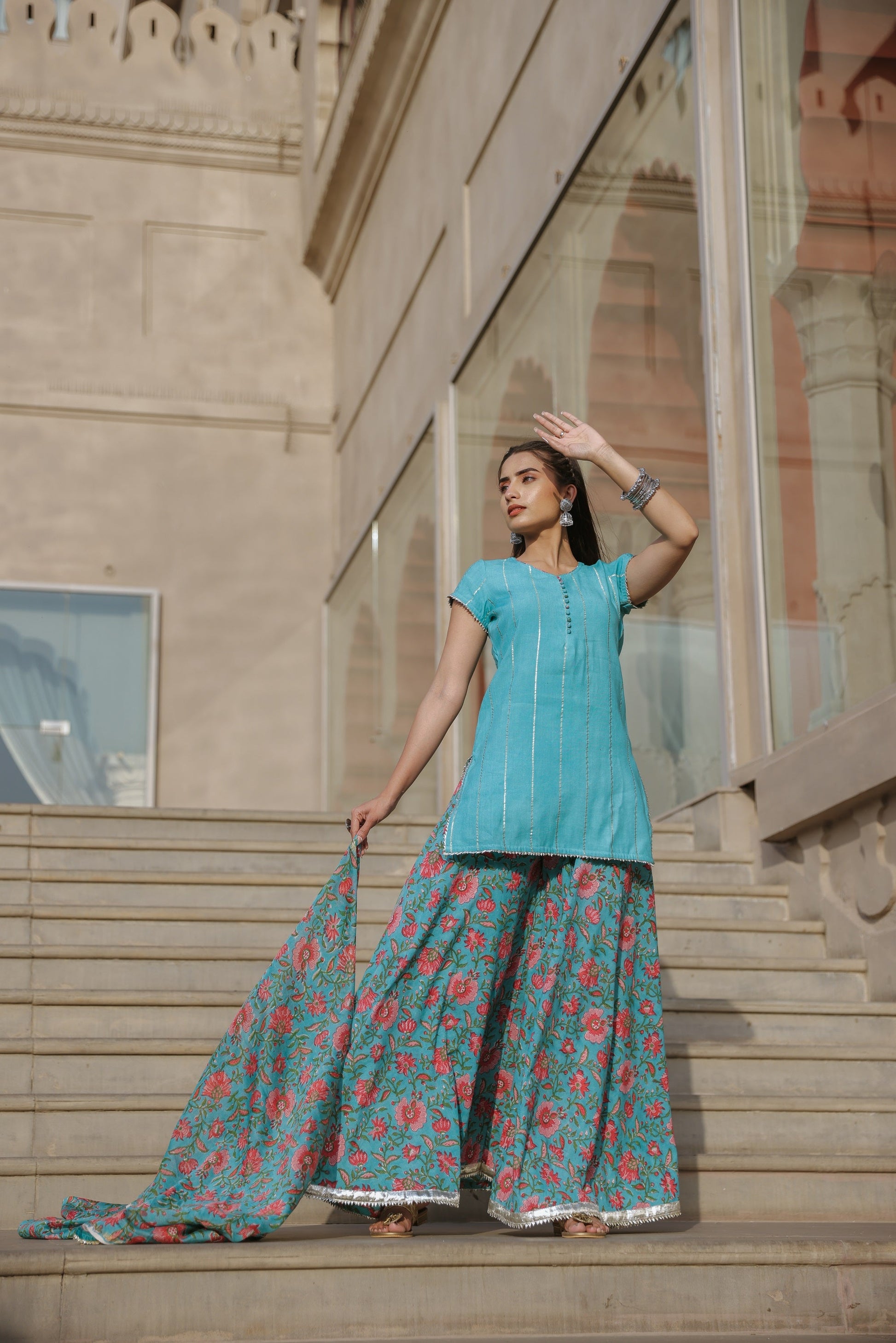 Cloud Blue Handblock Suit Set