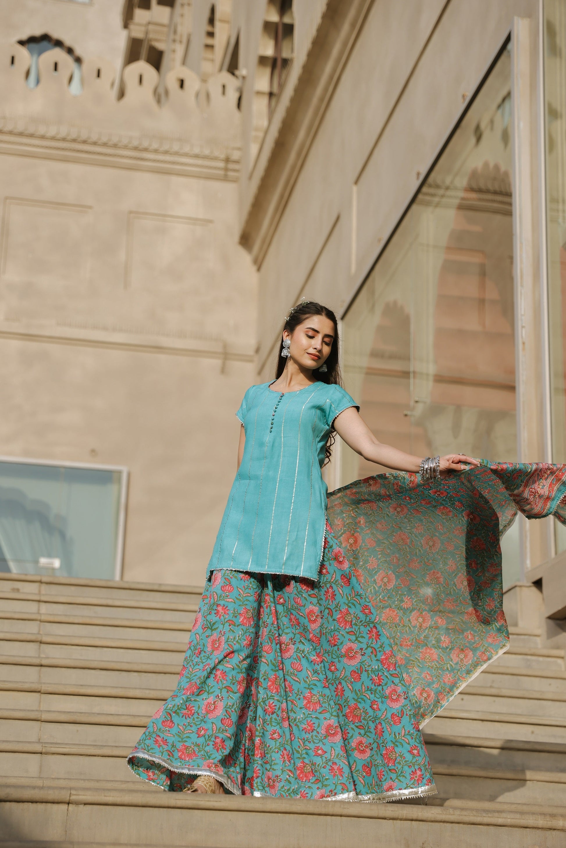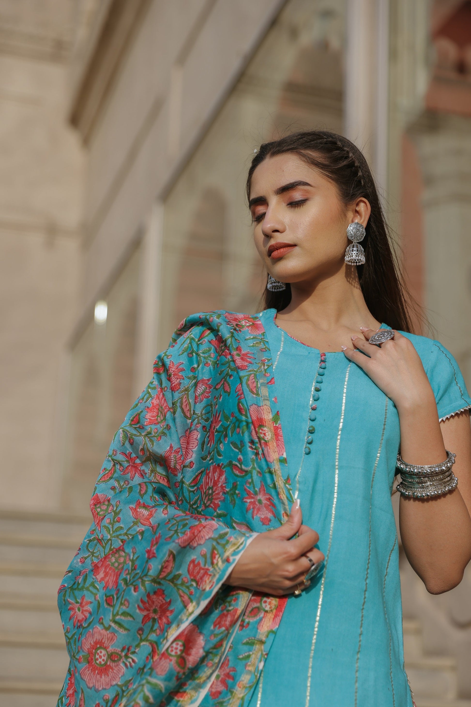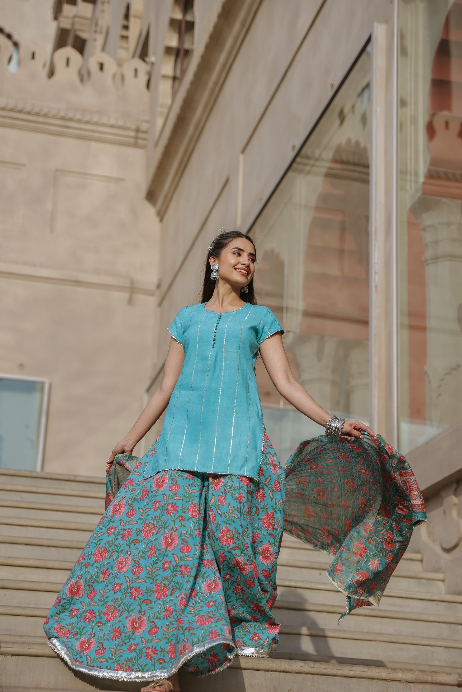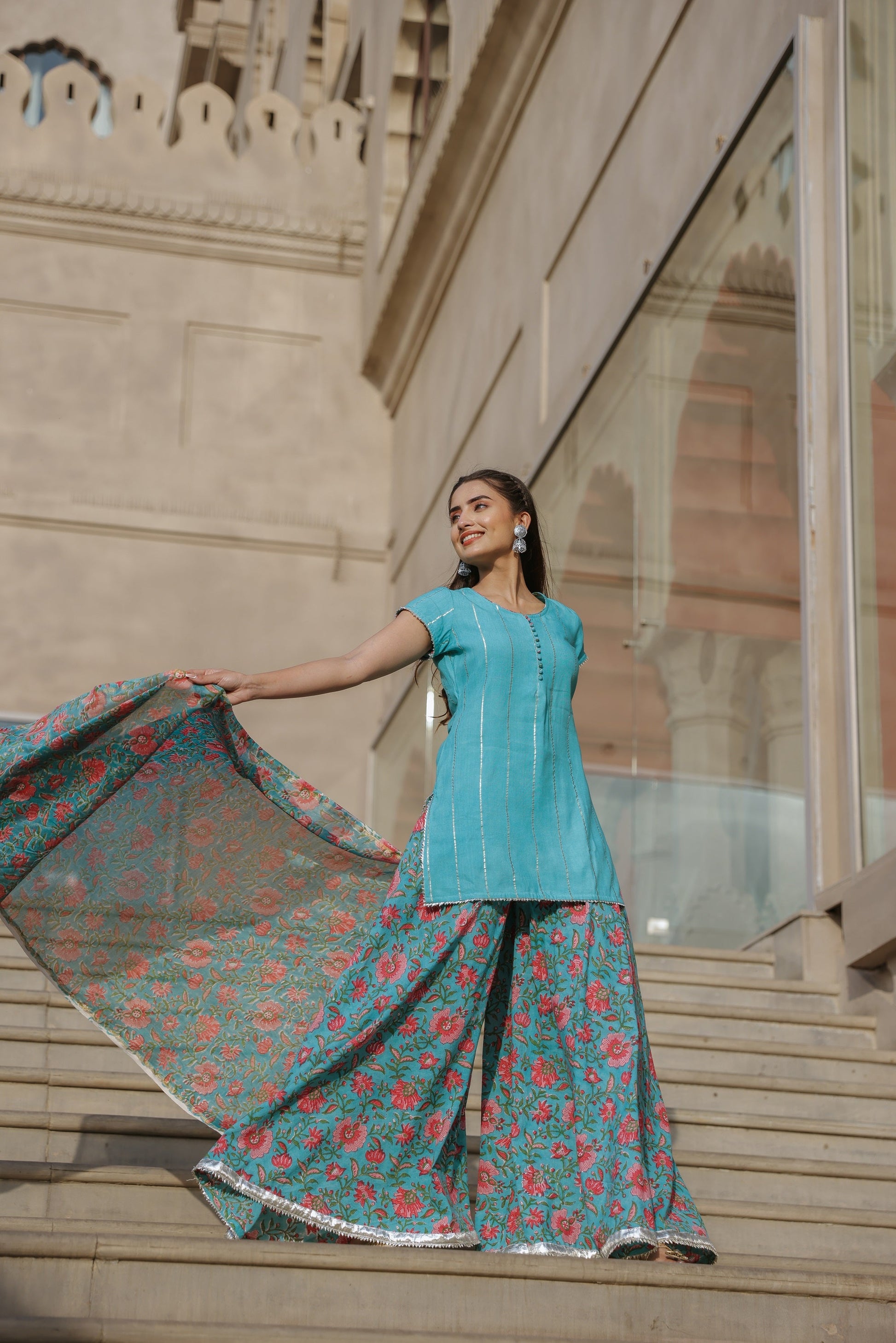 Cloud Blue Handblock Suit Set