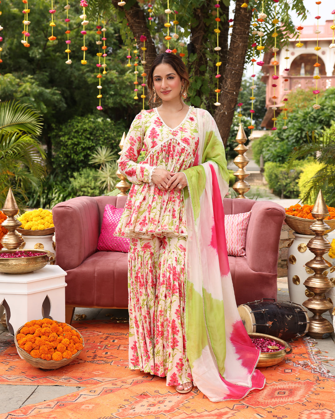 - Details: Kurta Length-32 , Sharara Length- 40" ,Dupatta Length- 2.5 Mtr.