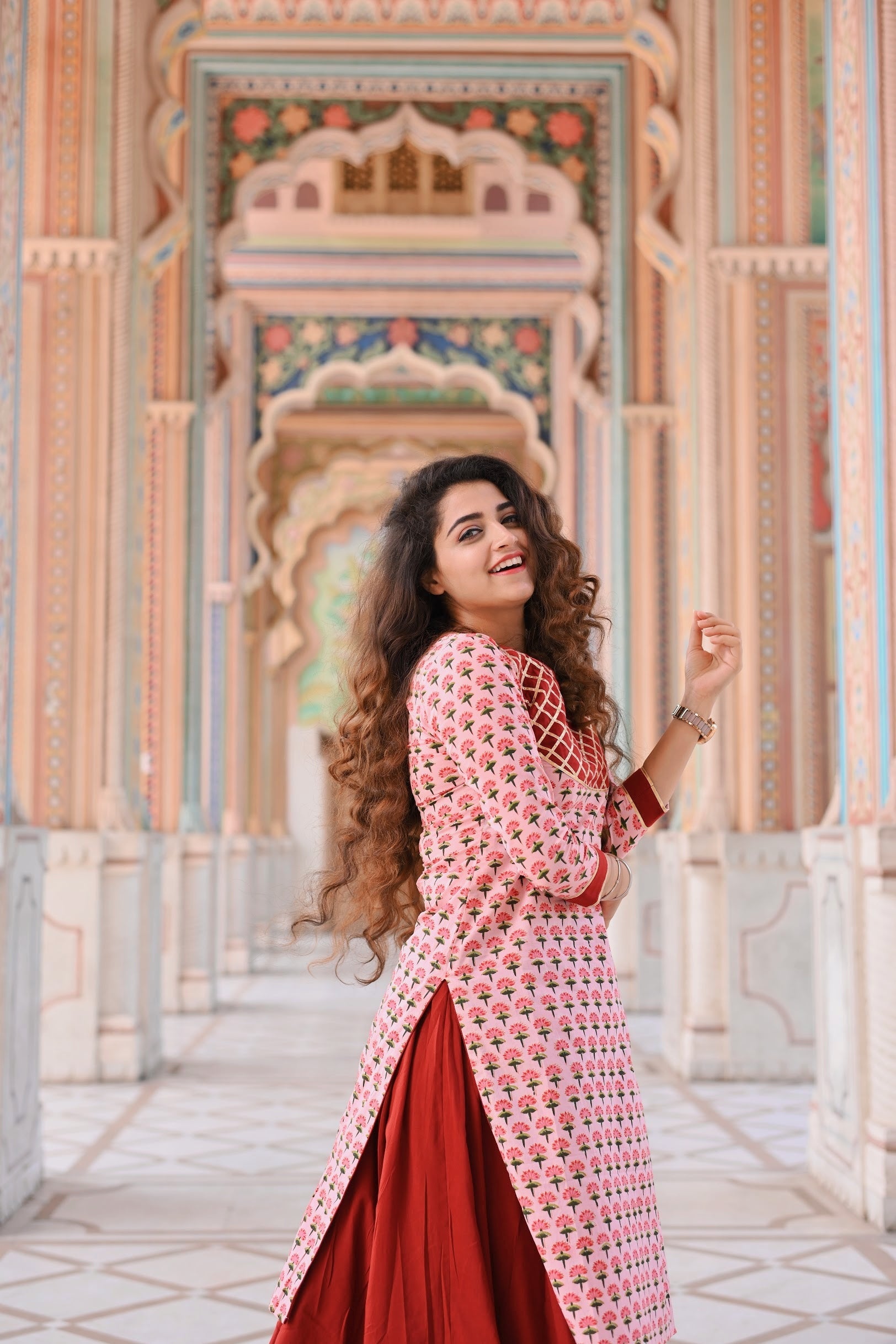 - Featuring in Maroon Printed Kurta .It is paired with matching Skirt.