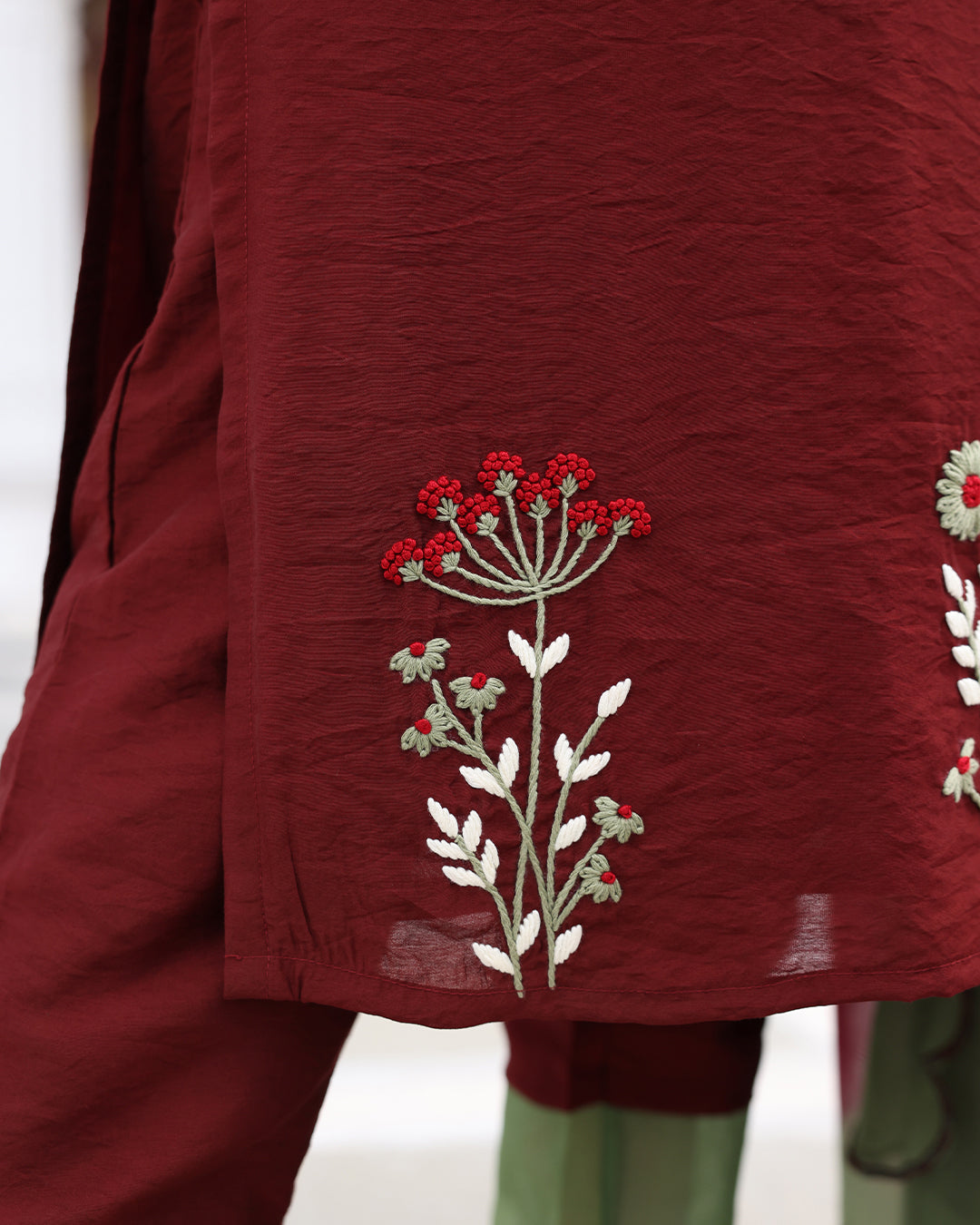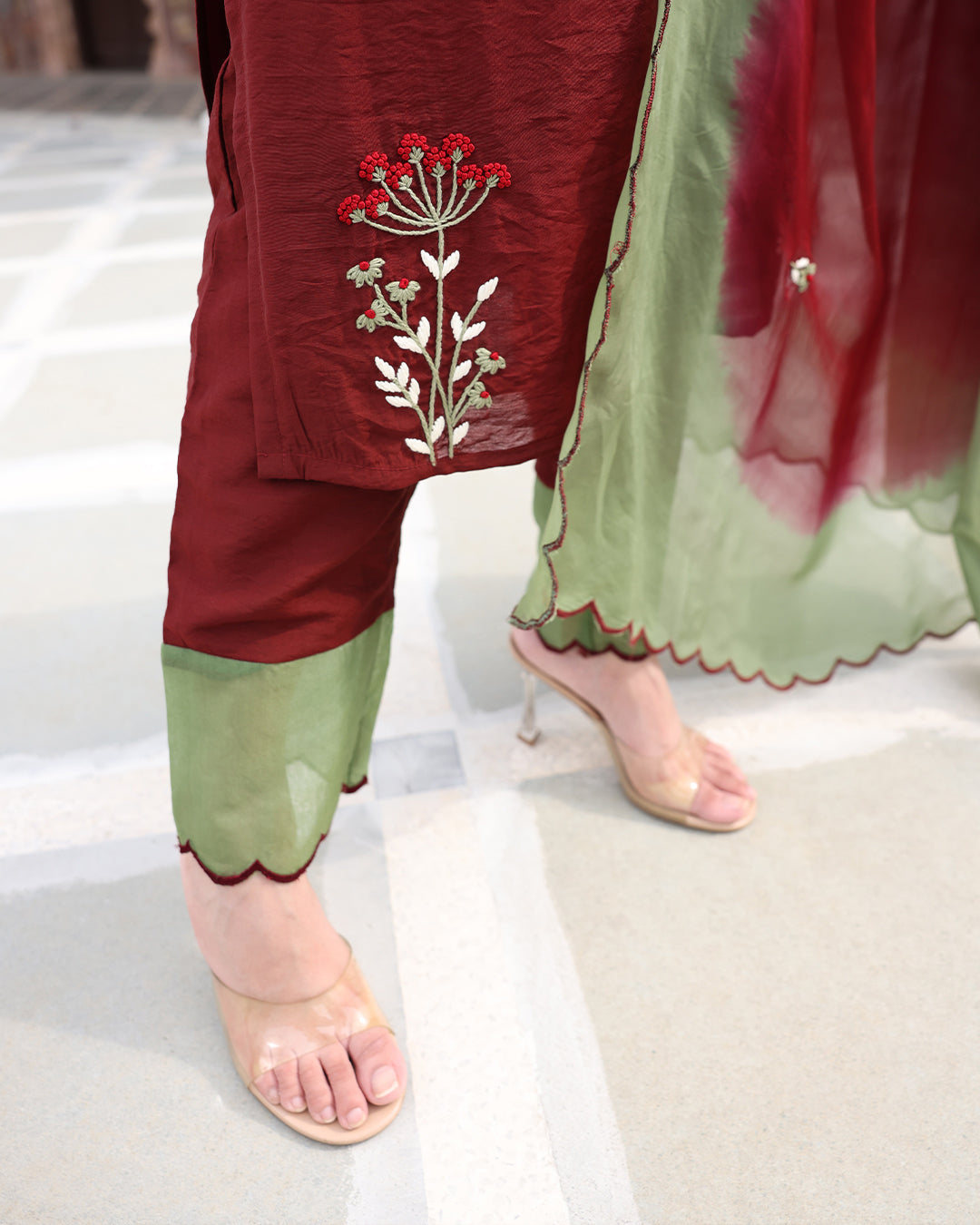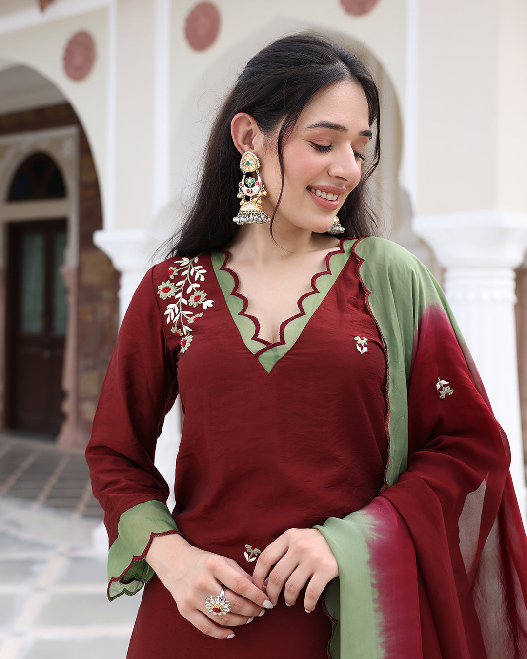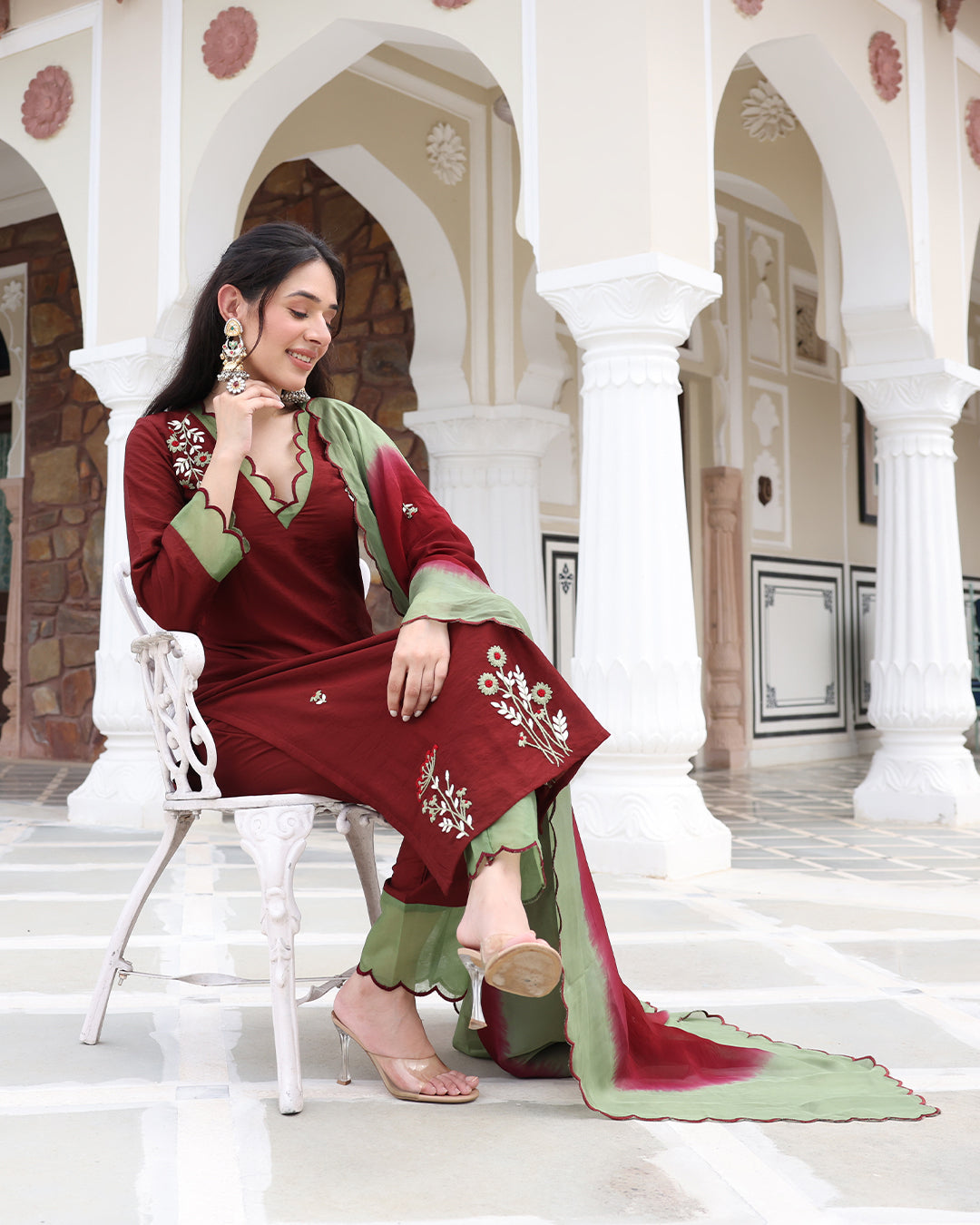 This set include Straight Kurta with Pant and Organza Hand work dupatta.