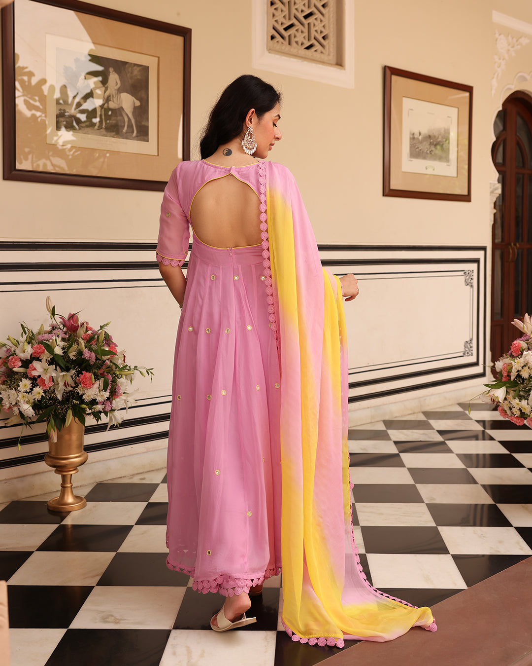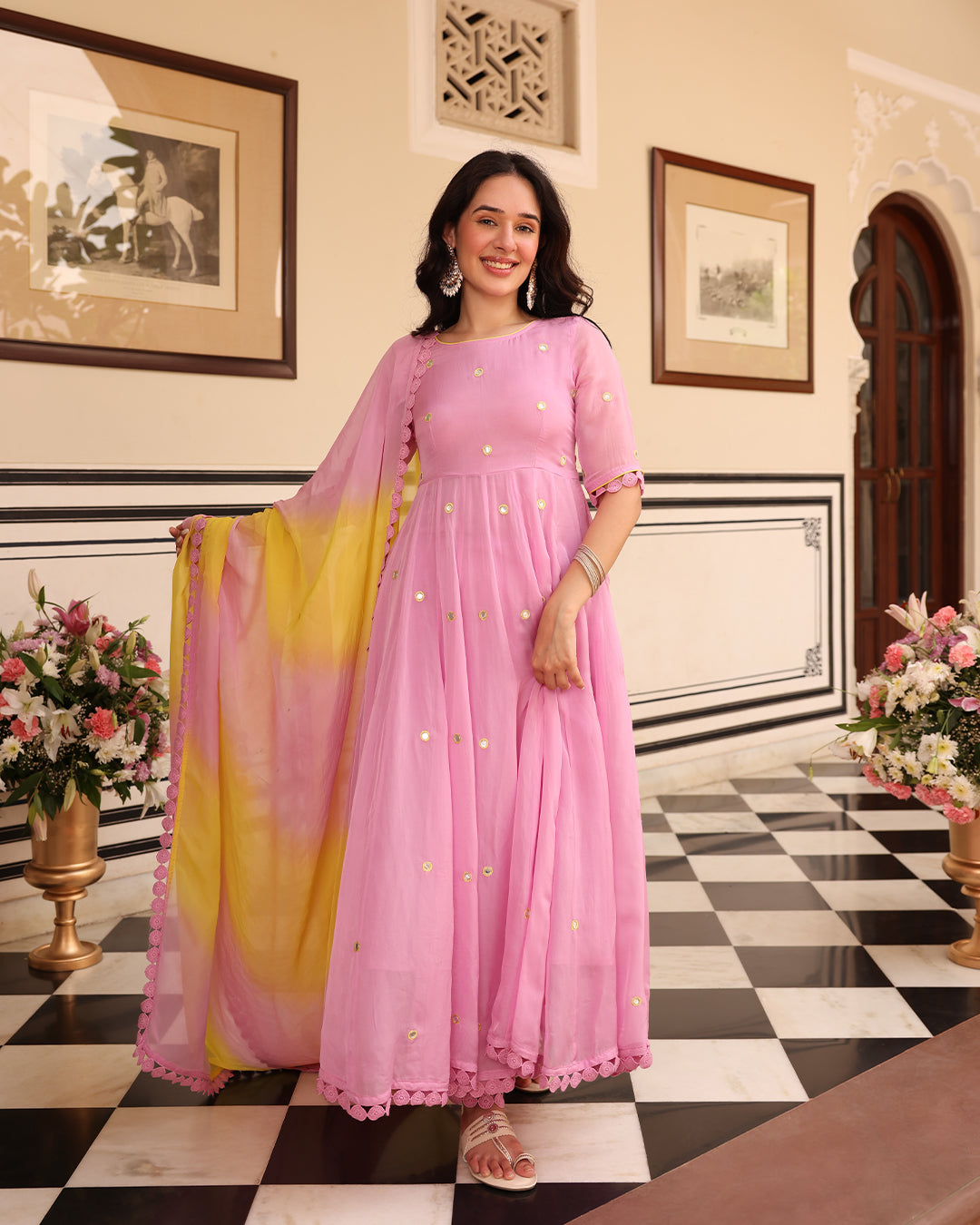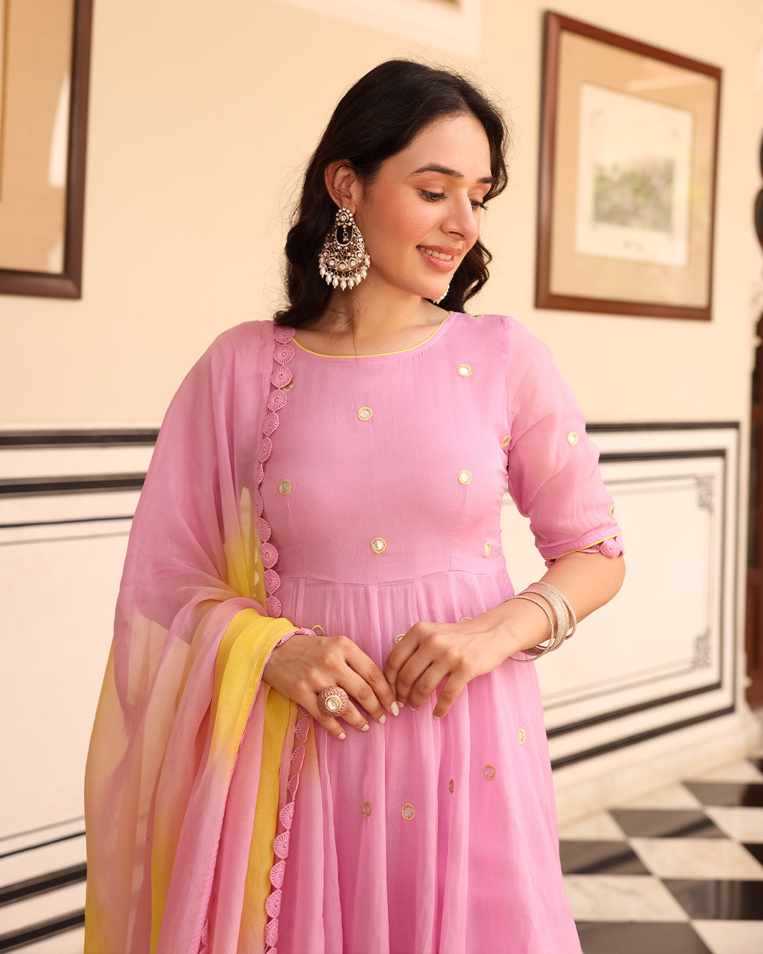 This set include Anarkali Kurta with pant and Organza dupatta.