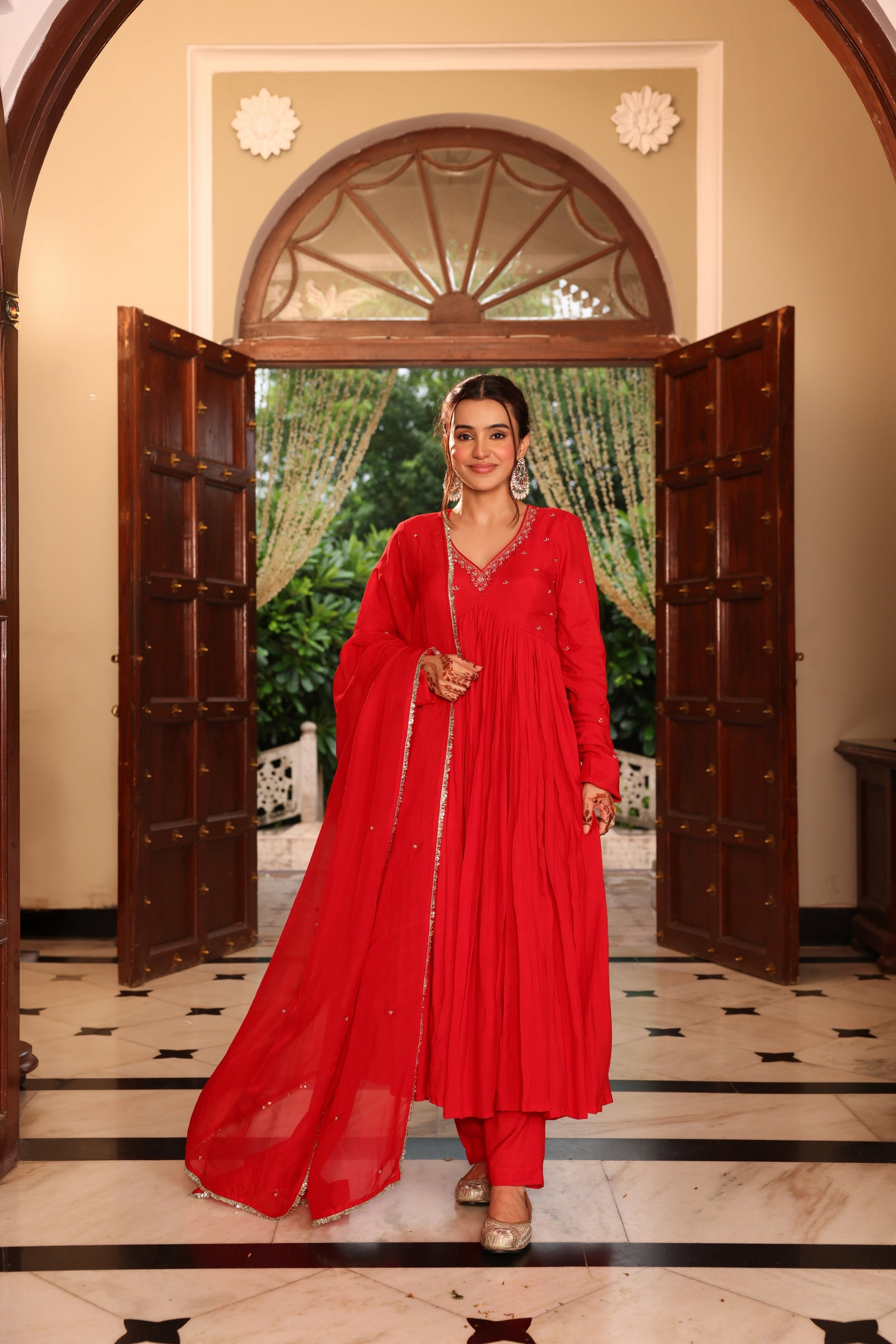 - Details: Anarkali Length-48'', Pant-38 Length-'', Sleeve Length 33 (Chooridar), Dupatta-2.5 mtr