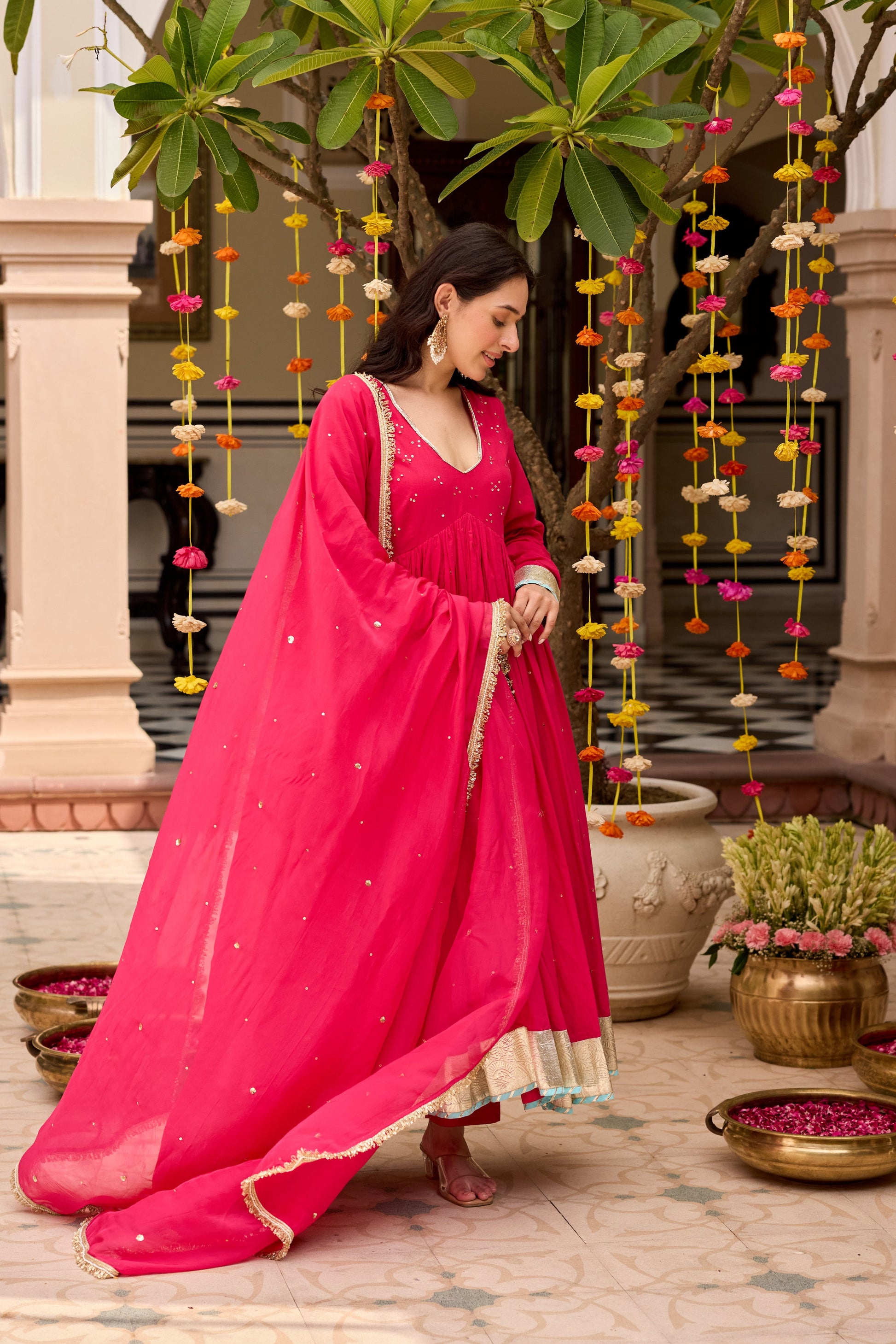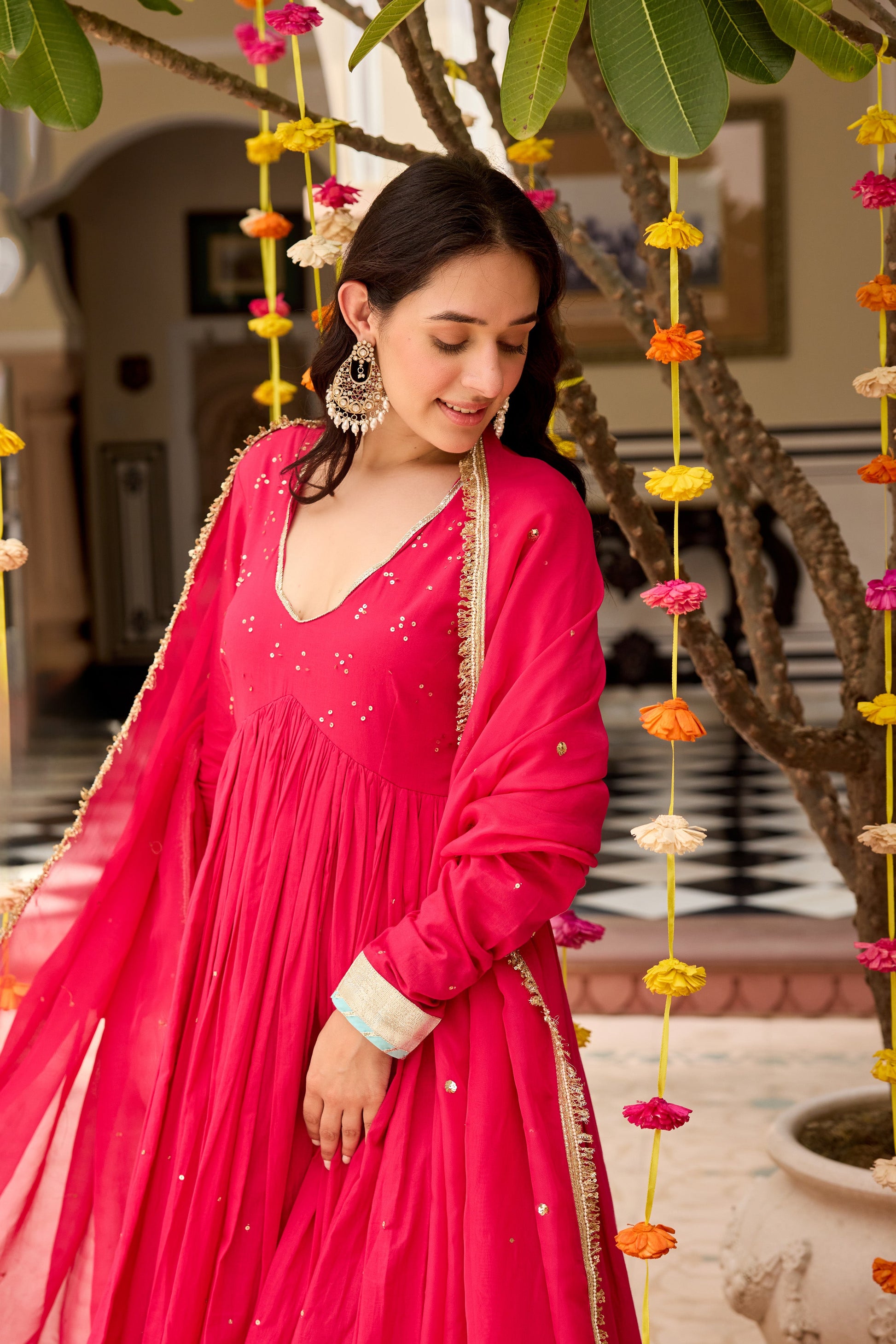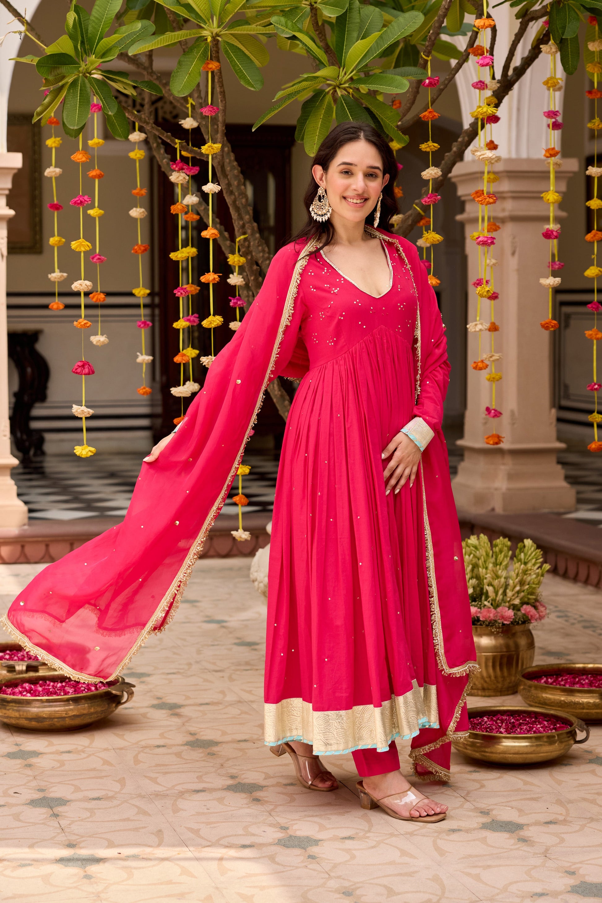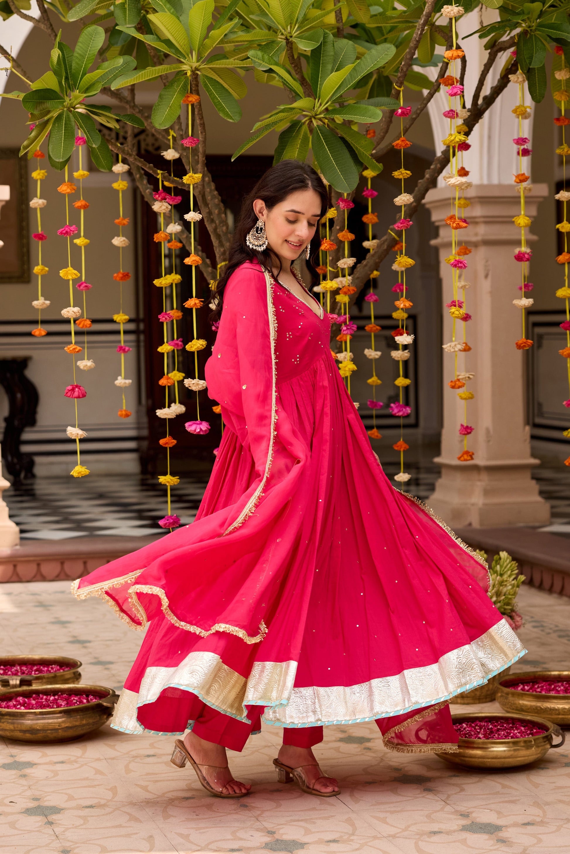 This set include Anarkali with straight pants and Organza Sequence Work dupatta.