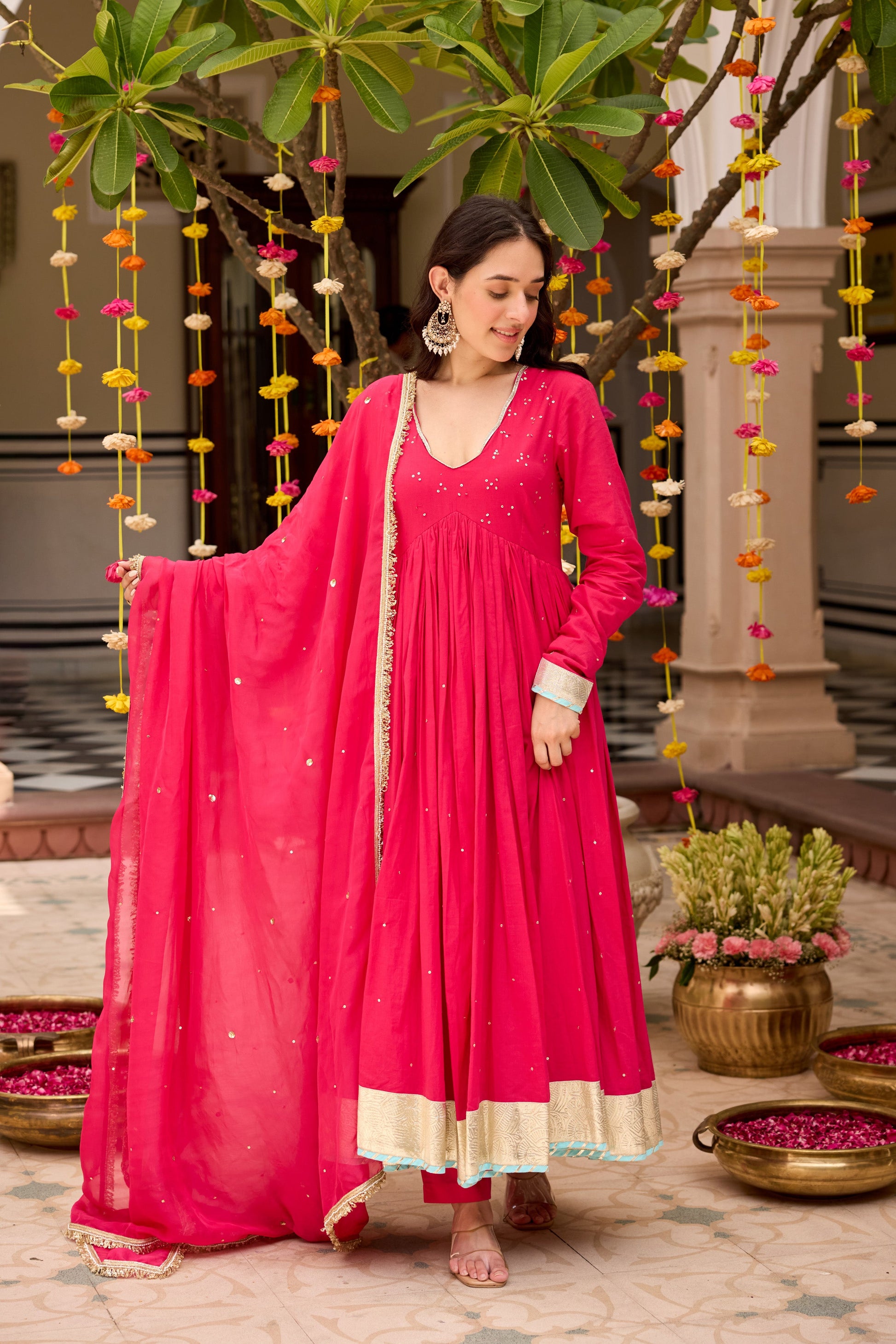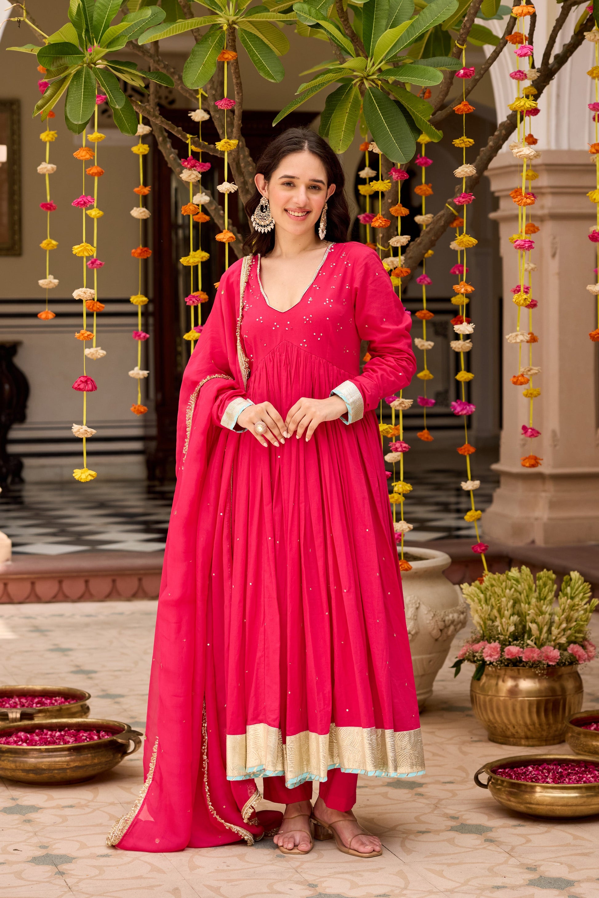 - Details: Anarkali Length-48'', Pant-38 Length-'',Sleeves-26", Dupatta-2.5 mtr