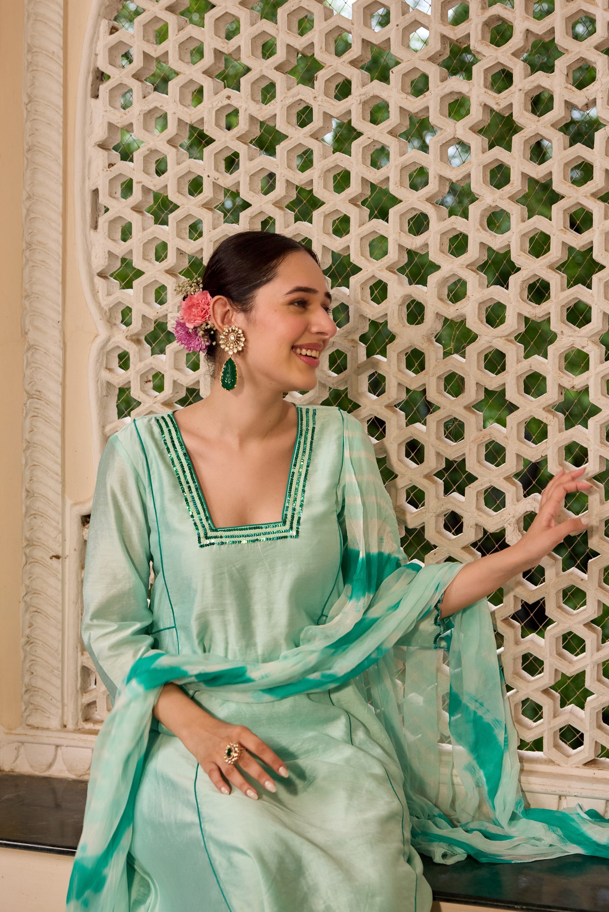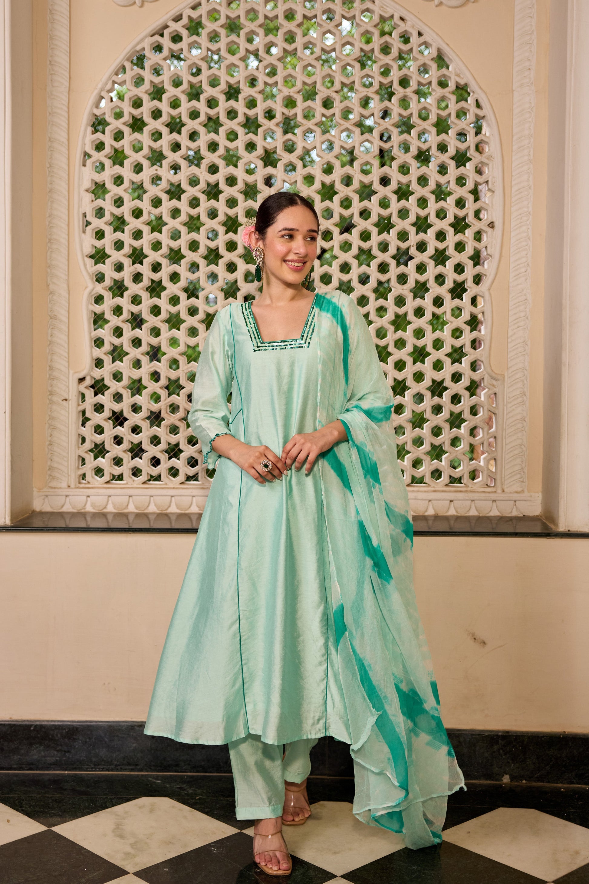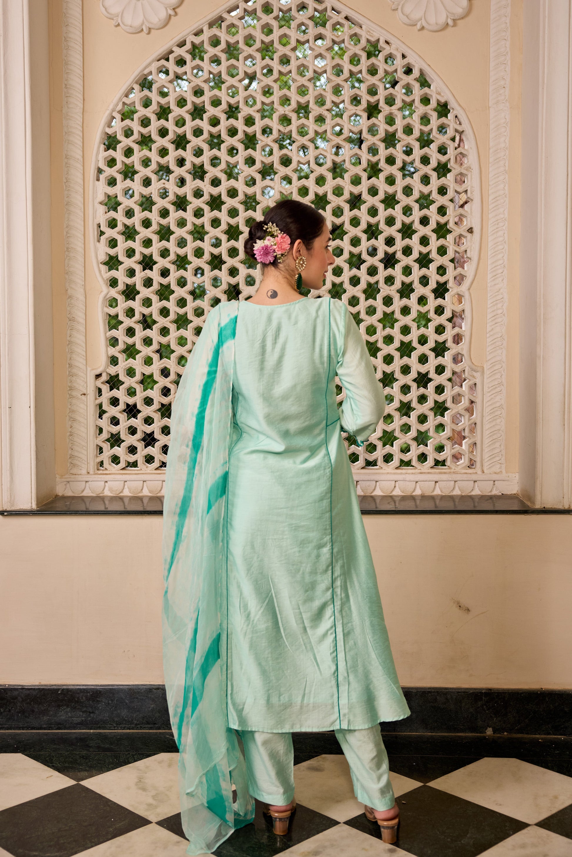 This set include Handwork Kurta with straight pants and chiffon dupatta.