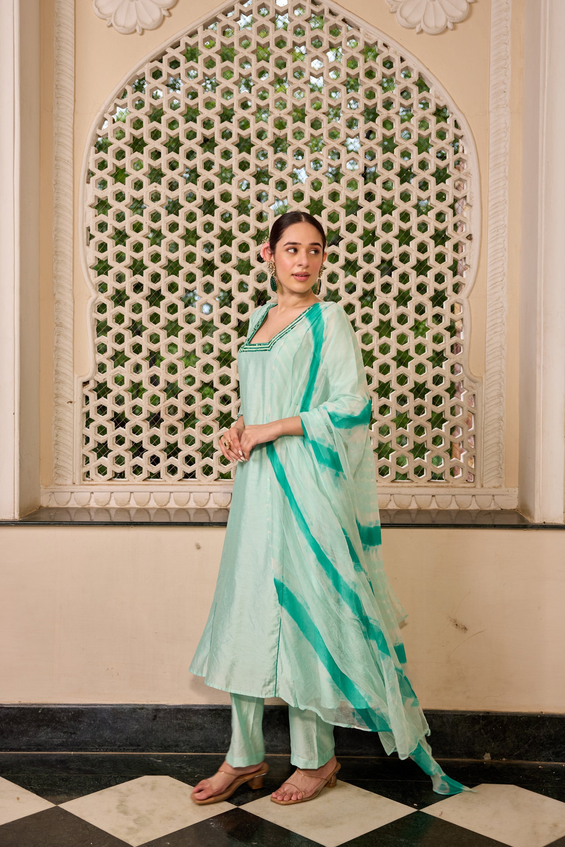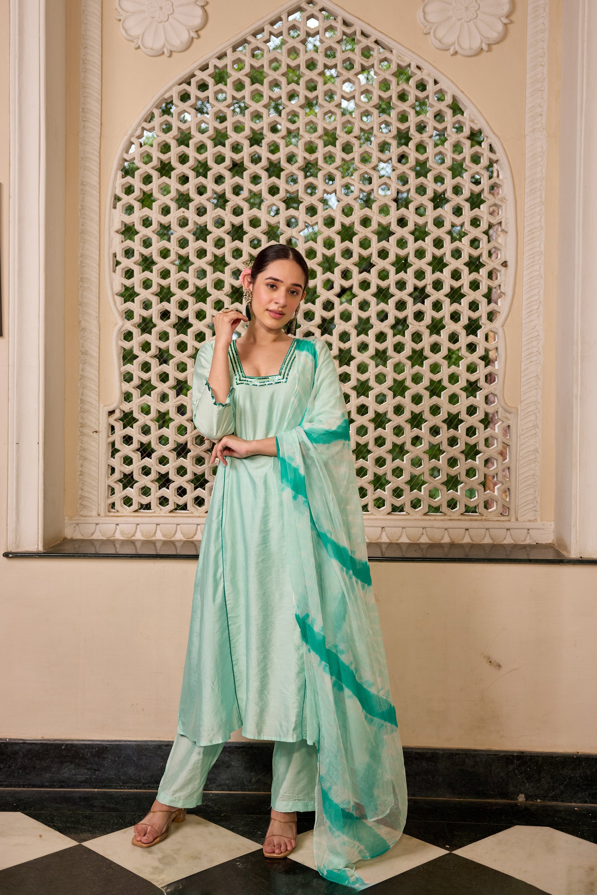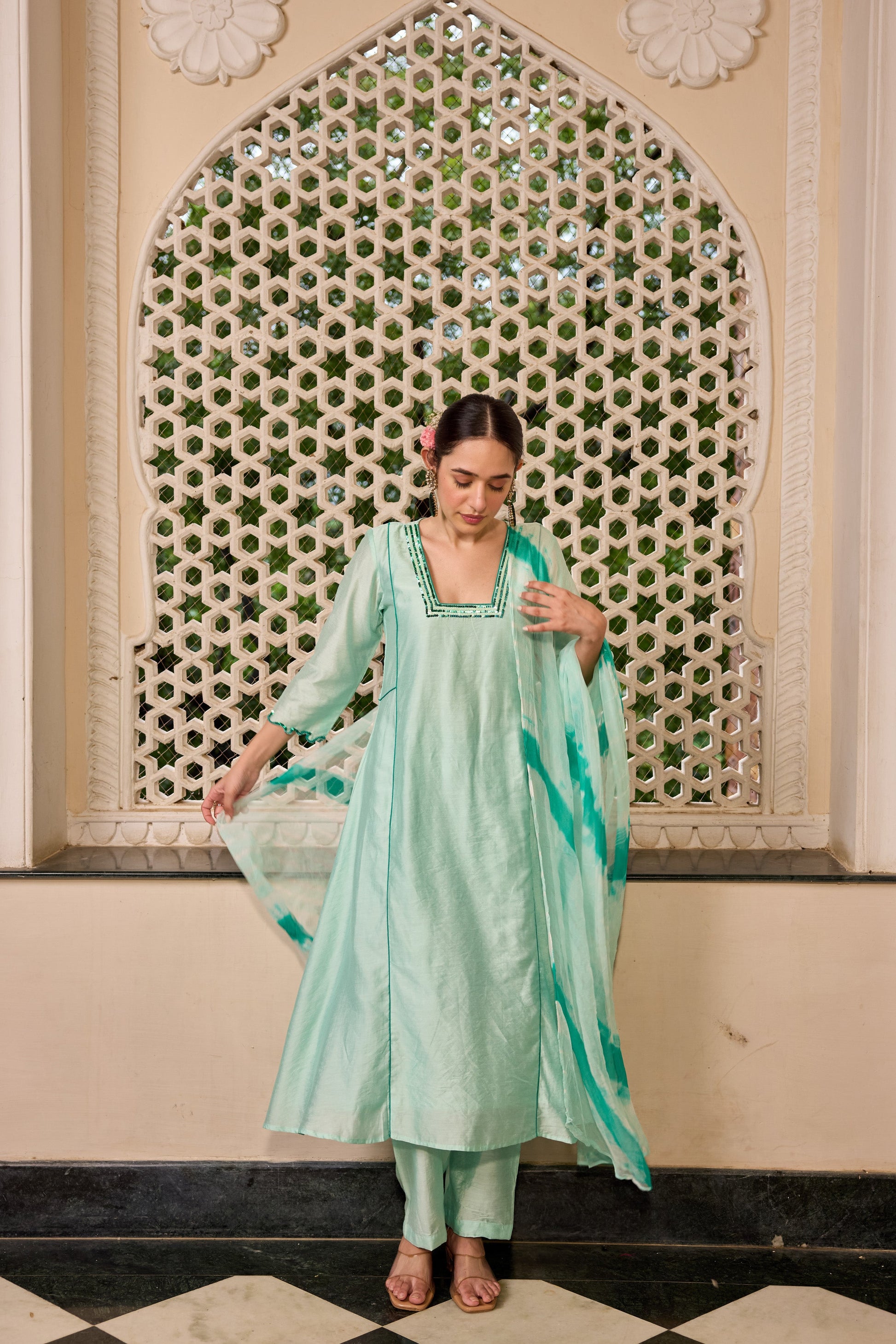 This set include Handwork Kurta with straight pants and chiffon dupatta.